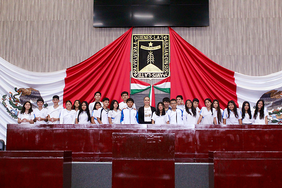 Con el propósito de acercar a las y los jóvenes a la vida parlamentaria y fomentar su interés por la participación ciudadana, esta mañana la diputada, presidenta de la Mesa Directiva, Jazmín Solano López, recibió con gran entusiasmo a los alumnos y docentes de la Escuela Secundaria Federal “2 de Abril” del municipio de Temixco, quienes recorrieron las instalaciones del Congreso del Estado de Morelos como parte de una visita guiada y compartió con ellos información sobre el trabajo legislativo, y la importancia de la labor que se realiza desde este Poder.