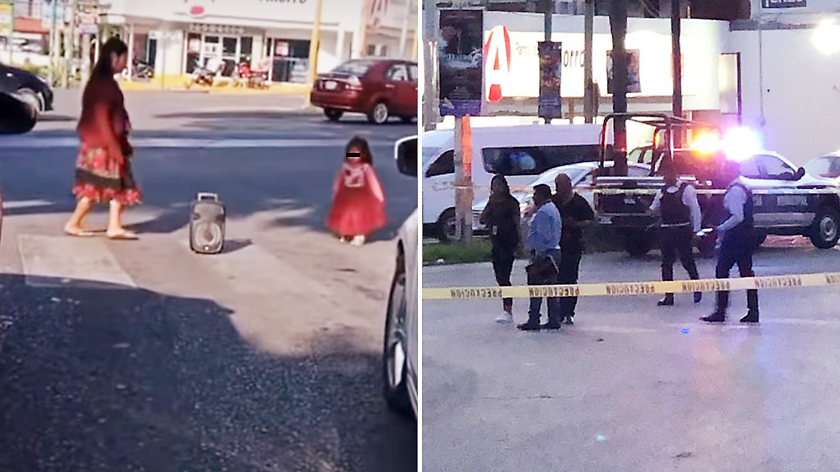En imágenes captadas varias semanas atrás, se puede ver a la niña usando vestidos coloridos para hacer más vistosa su “presentación” apoyada con una bocina portátil operada por una mujer. Al finalizar el baile se acercaba a los automóviles para pedir algunas monedas.