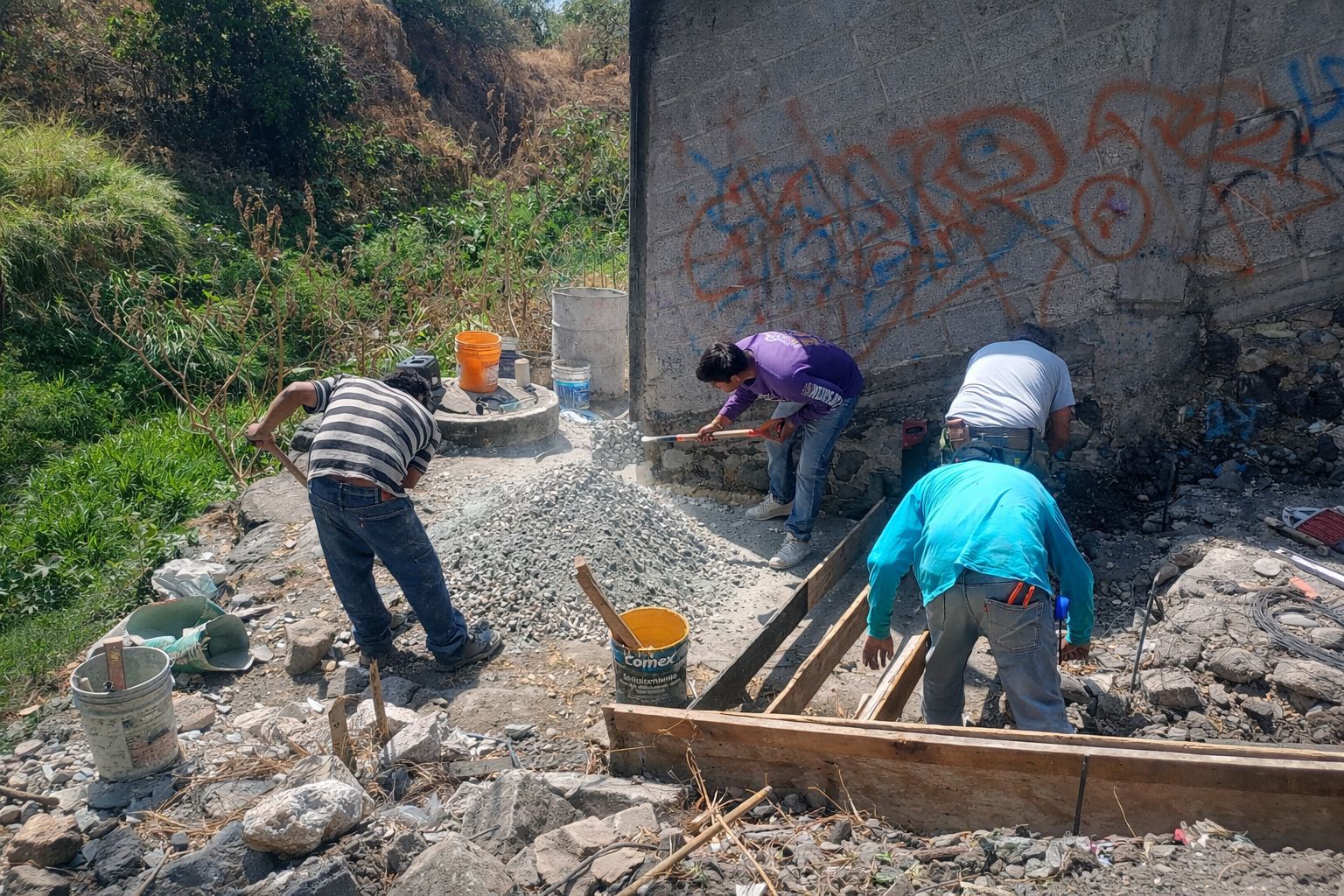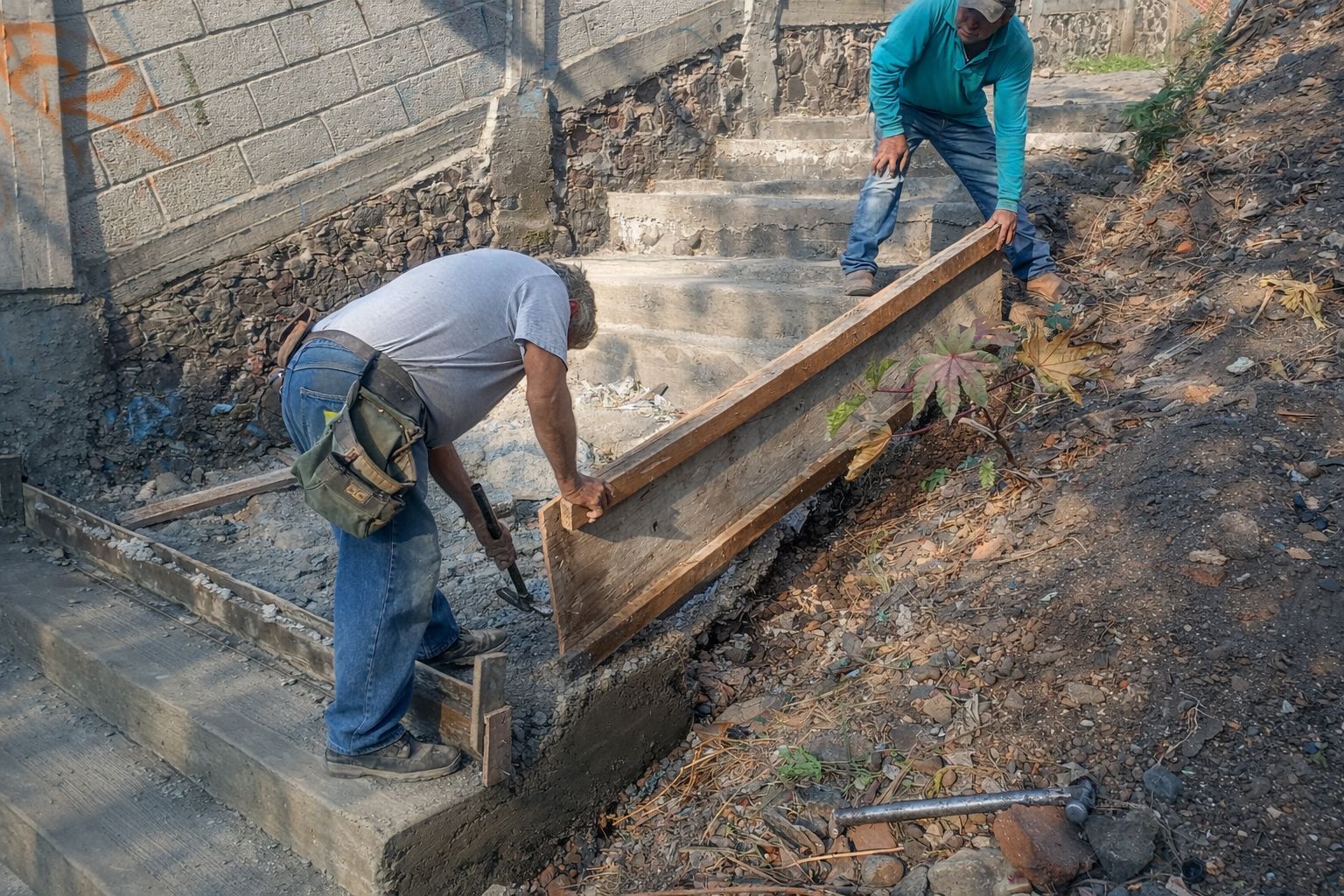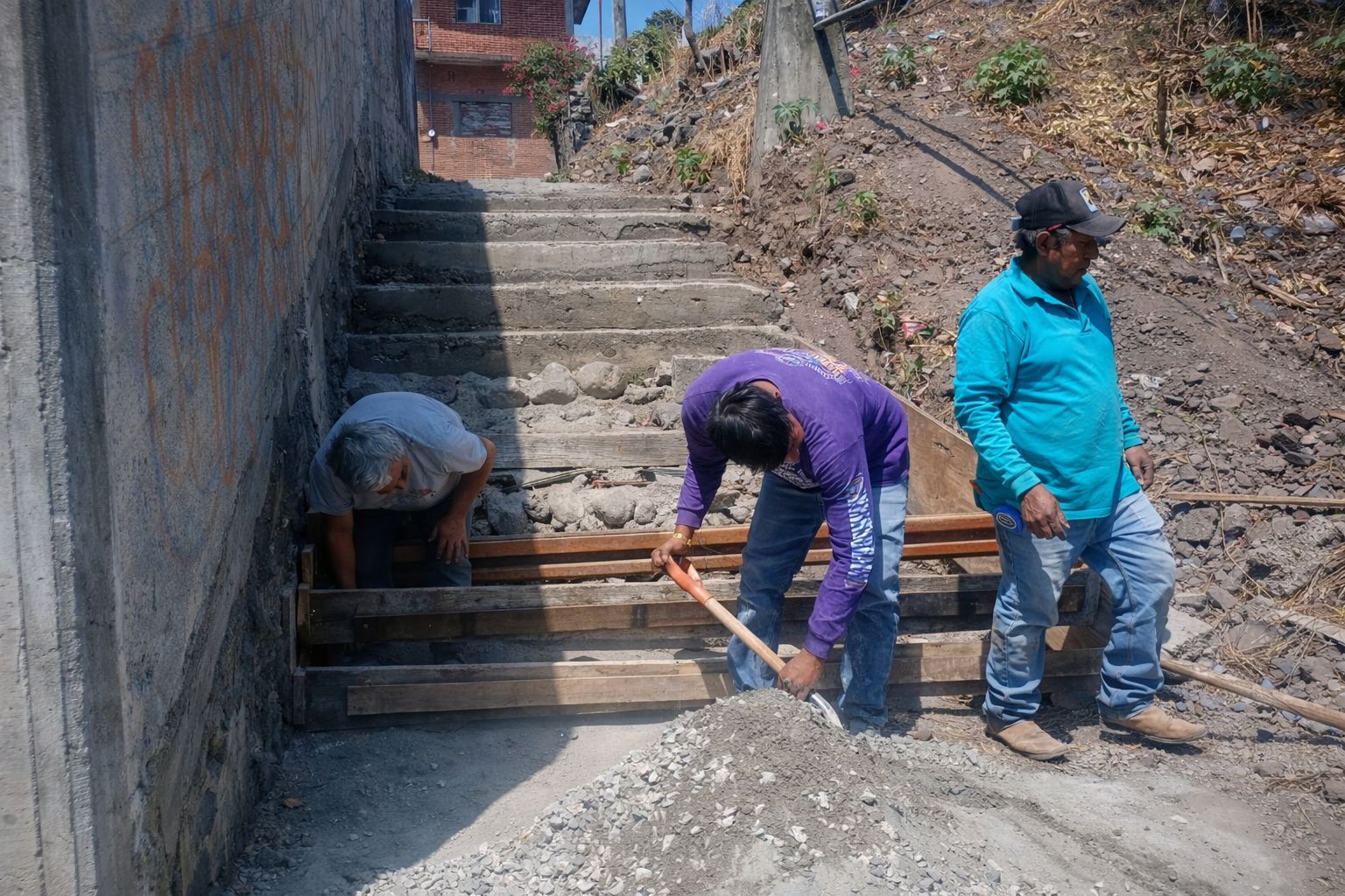 En respuesta directa a las solicitudes de la Ayudante y las y los vecinos de la colonia Santa Cruz, el Ayuntamiento de Cuautla, que preside el alcalde Jesús Corona Damián, a través de la Dirección General de Obras Públicas, realiza la rehabilitación de las escaleras ubicadas en el andador del Río Cuautla.